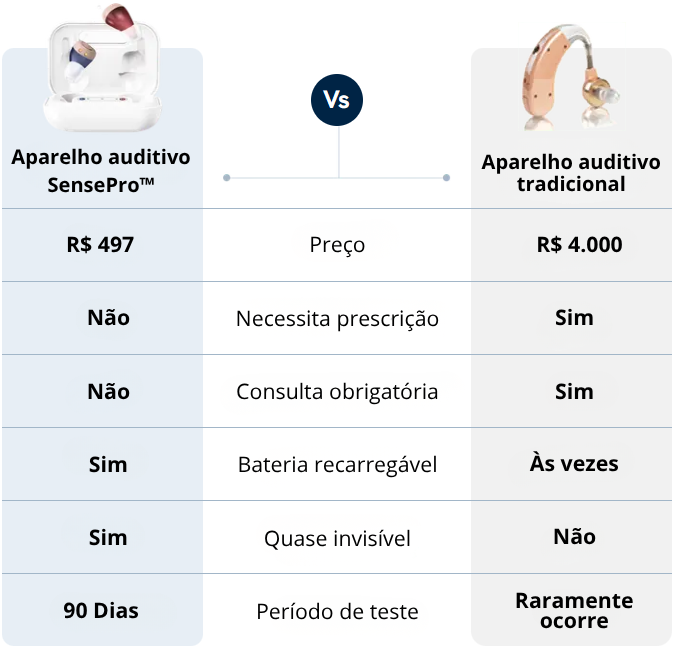 “Fui testar um aparelho auditivo de uma marca famosa e o orçamento ficou em R$7.400. Eu praticamente teria que fazer um empréstimo para comprar. Quando vi o SensePro, resolvi testar por causa do preço. Ainda bem que fiz isso. Tenho problemas de audição há anos e eles funcionaram perfeitamente desde o primeiro uso. É um produto excelente. Inclusive vou comprar um par extra para ter de reserva, caso eu perca um ou aconteça algo com o atual. Recomendo o SensePro sem dúvida nenhuma.”